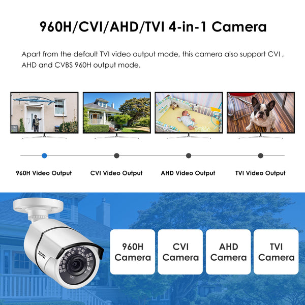 This 1080p security bullet camera comes with built-in 36pcs IR LEDs,3.6mm lens with IR CUT , works with all brand TVI, AHD, CVI, CVBS security video DVR recorder.