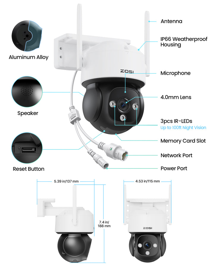 C290 4K PTZ WiFi Security Camera + Built-in 64GB Memory Card