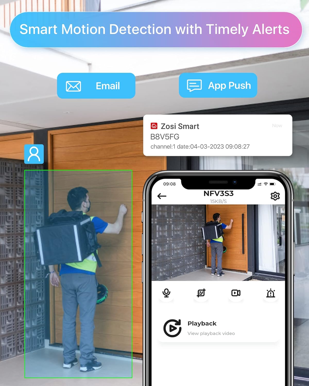 You can conveniently view and control your security system locally by connecting it to a monitor without internet, or remotely via the free ZOSI Client software on tablets, PCs, or the ZOSI Smart mobile app on smartphones. The system allows you to easily search and playback recorded footage from different days, hours, or minutes, making it simple to find significant evidence or entertaining videos.