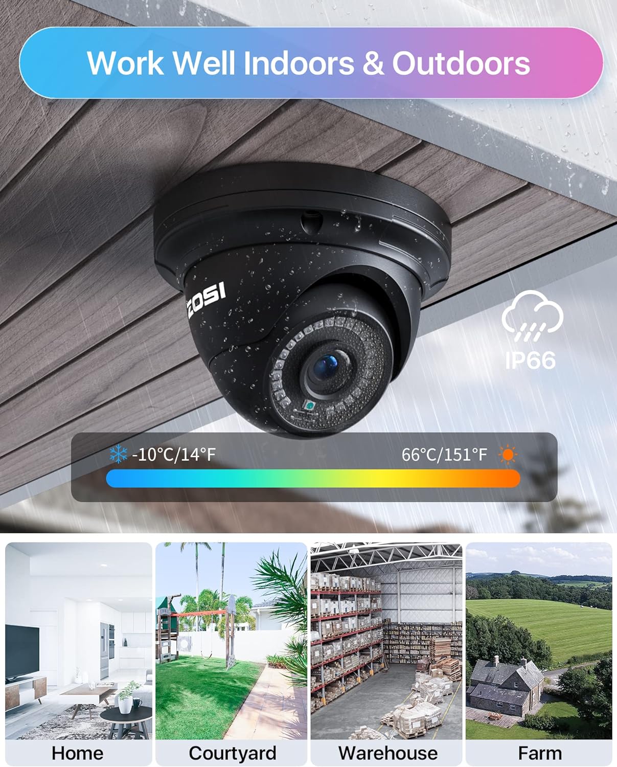 Full metal casing with IP66 waterproof rating makes your super HD cameras work efficiently both indoors and outdoors.(Working environment: -10ºC /14ºF to 60ºC /140ºF )